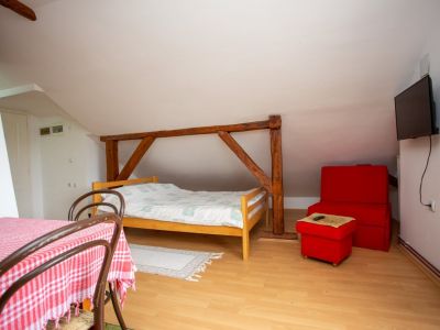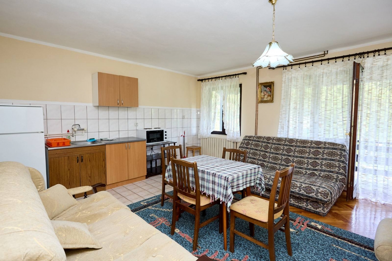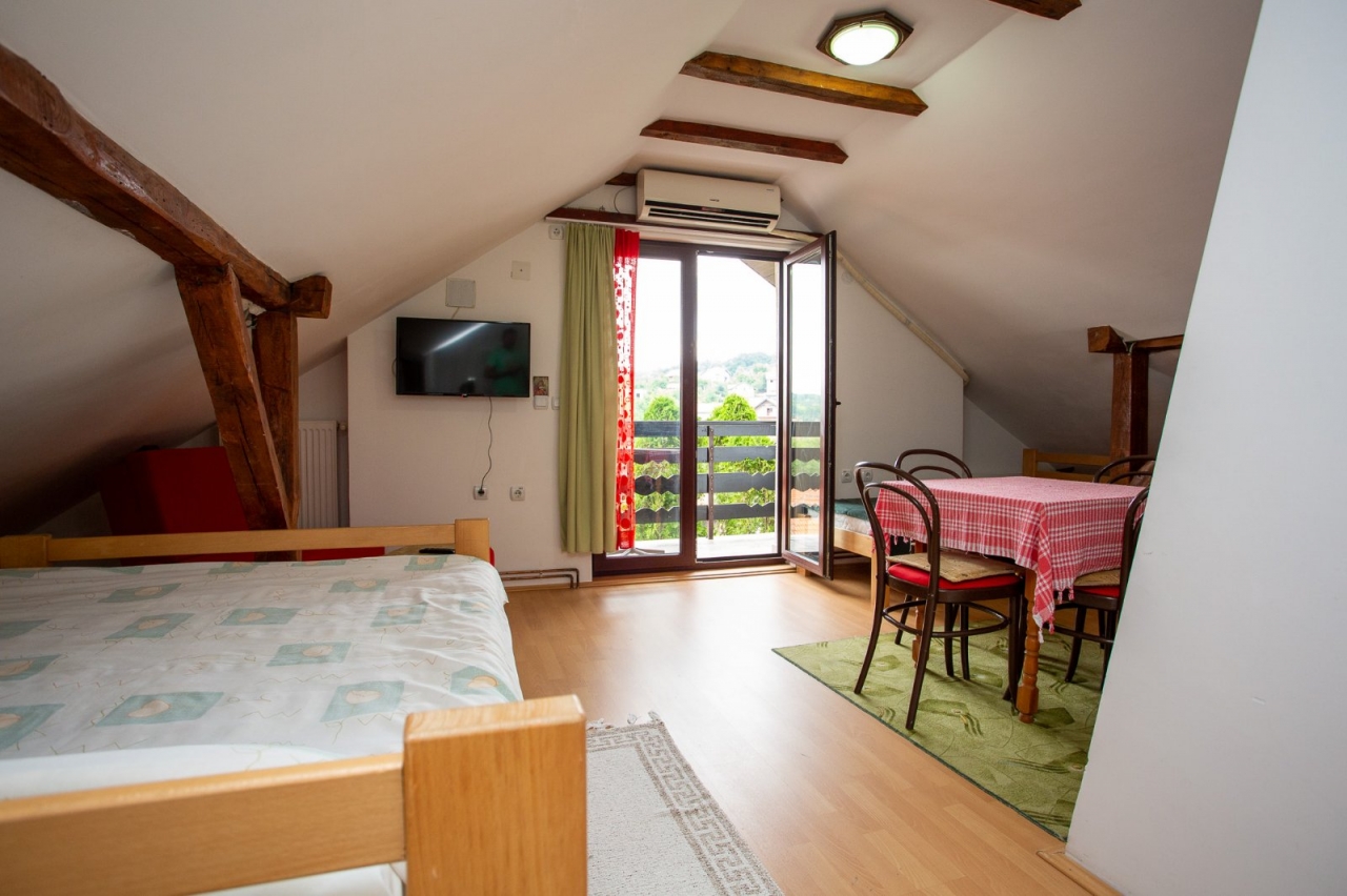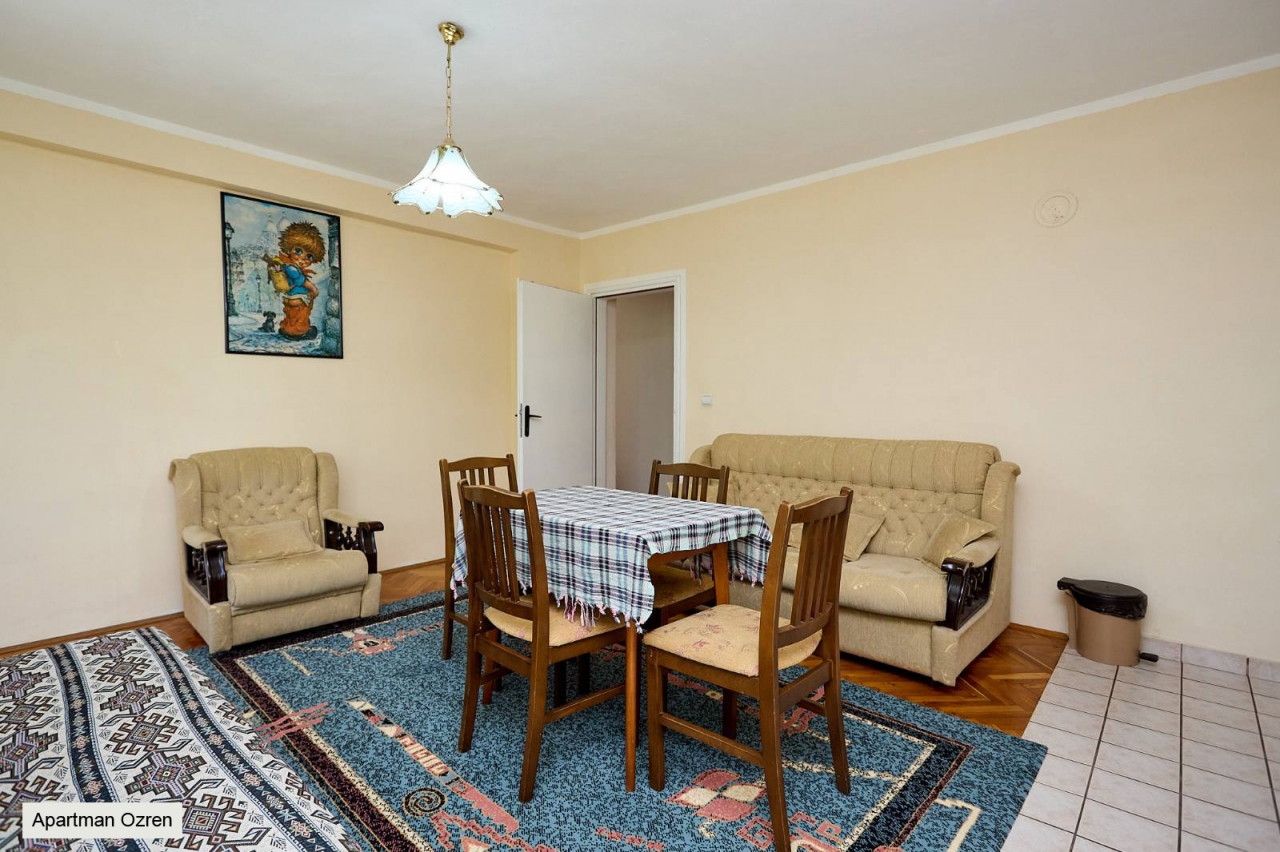Apartman ''Ozren" poseduje 2+3 lezaja. Nalazi se na 2 spratu. Ima spavacu sobu sa francuskim lezajem i jos jednim dodatnim lezajem TV sa kablovskom, dve fotelje sa stocetom. Dnevni boravak sa jos dva dodatna lezaja, kuhinja, frizider, wc sa tus kabinom, velika terasa sa pogledom na planinu Ozren, bezicni internet, parking mesto.